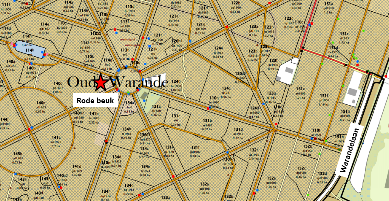 In het bosgebied Oude Warande staat een monumentale Rode Beuk. Deze boom heeft gezondheidsproblemen en om hem toch te behouden zal deze met tuien aan omstaande bomen gekoppeld worden.